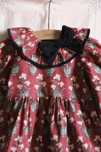 Bonjour Diary Iris Handblock Printed Dress with Removable Bow