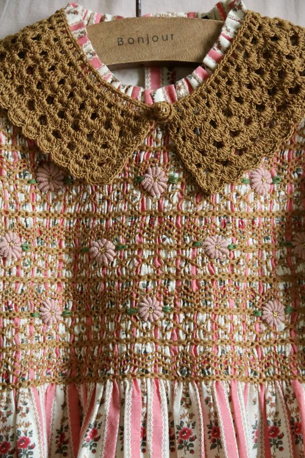 Bonjour Diary Pink Hand Smocked Blouse With Crochet Collar