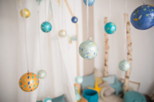 The L’Oiseau Bateau Dream Bubbles ~ Turquoise Deco Series is a dreamy collection of six patterned and plain resin baubles designed to hang in a nursery or child’s room to add beauty, colour and ambience.