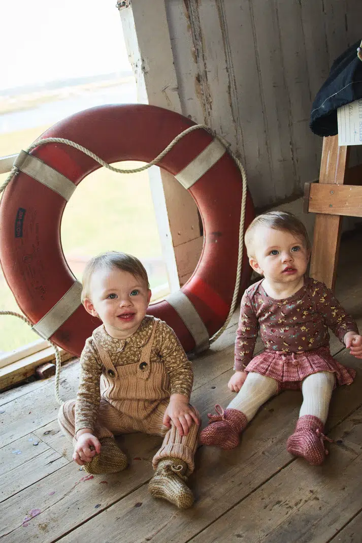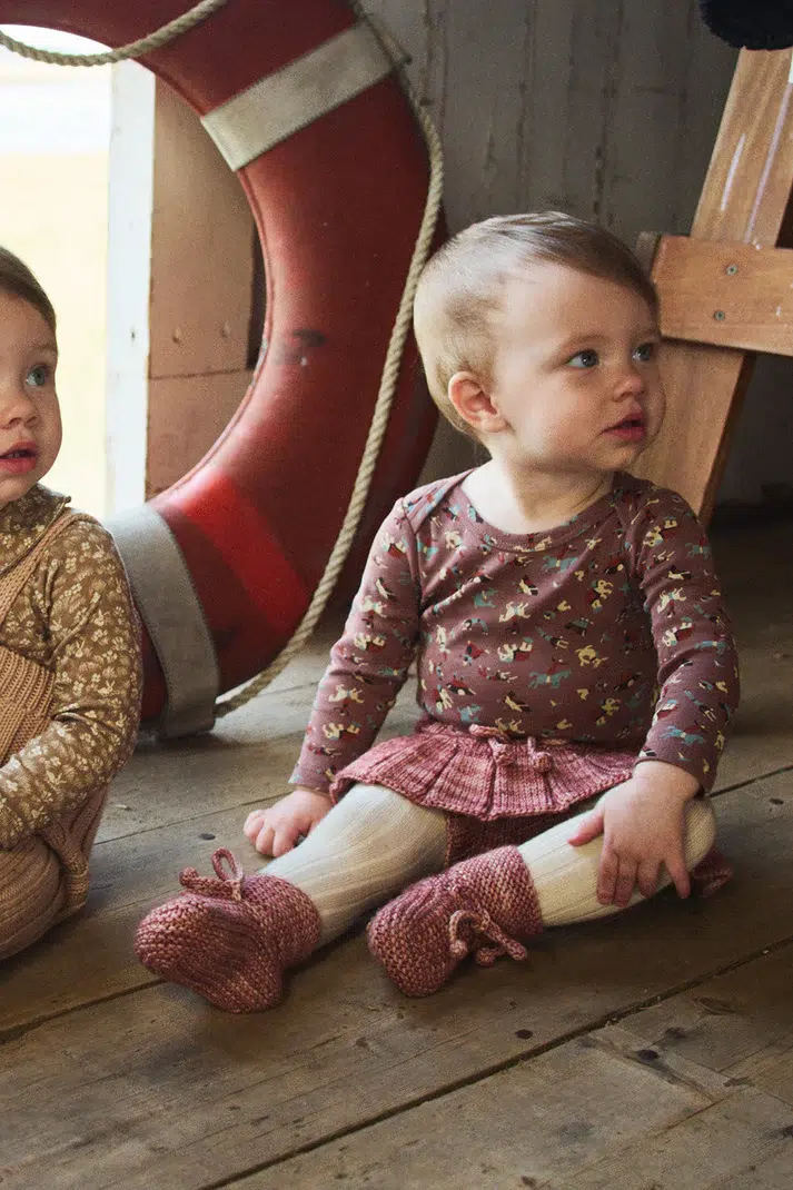 Misha & Puff Baby Skating Pond Skirt Prairie Rose is a hand-knit skirt in pure Merino wool.