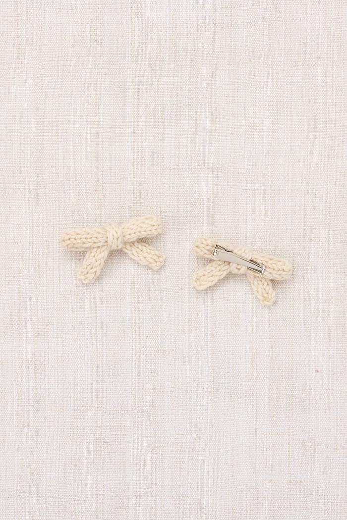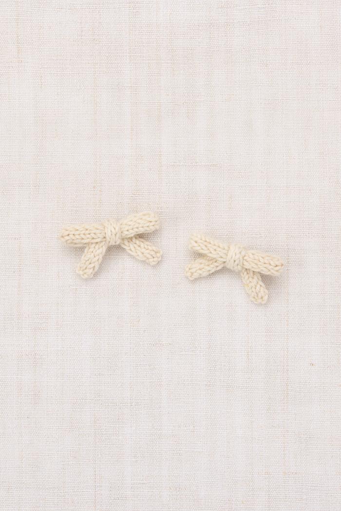 Misha & Puff Goldie Bow Set String is hand knit in Merino wool, mounted on alligator clips.